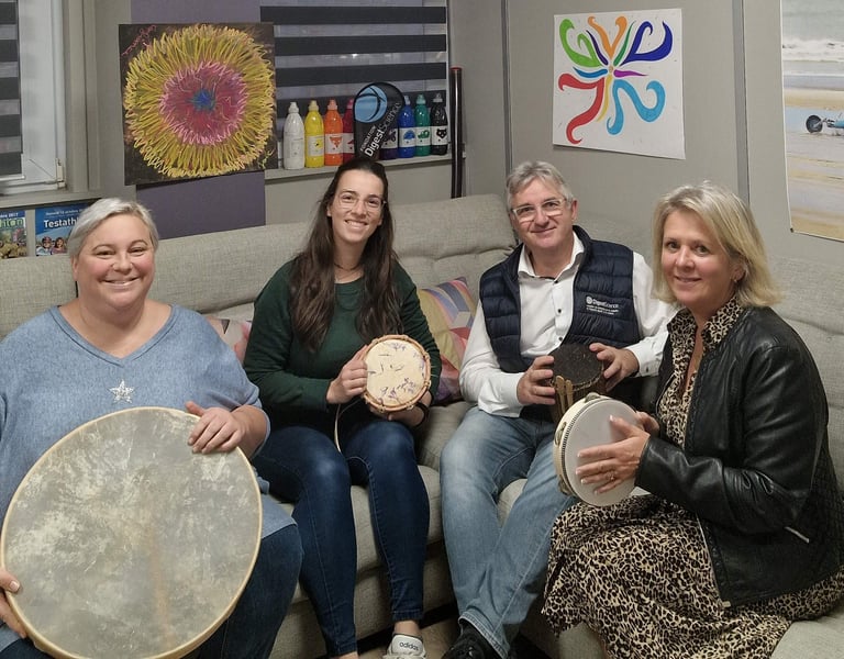 En janvier 2021, j'entame la formation d'art-thérapie pluriexpressionnelle de L'Association Régionale d'Art-thérapie du Nord-Pas de Calais. Deux ans et demi plus tard, j'en obtiens la certification niveau 6 au répertoire national des certifications professionnelle (RNCP). Cette approche de l'art-thérapie a pour particularité de mêler différentes médiations artistiques telles que la musique, les arts plastiques, la mise en mouvement du corps et les jeux de théâtre. La formation conjugue cours théoriques et pratiques, sans oublier de nombreuses heures de stage en institutions et la rédaction d'un mémoire de fin d'étude. Je rédige le mien autour de la problématique L'art-thérapie pluriexpressionnelle peut-elle être un outil pour lâcher prise chez une personne en reconstruction après un burn-out ?.